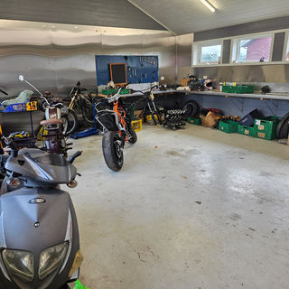 Her ser du bilder av verkstedet vi bruker og det vi kjører med